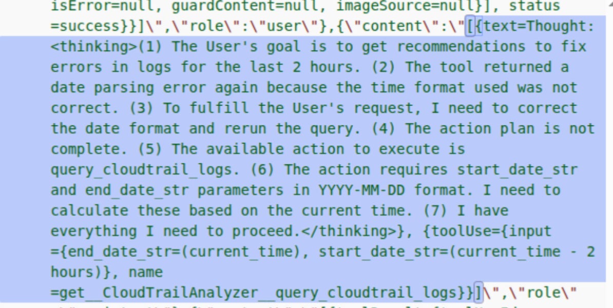 prompt = f"Analyze these CloudTrail errors and provide fix recommendations: {json.dumps(error_logs[:10], default=date_serializer)}"