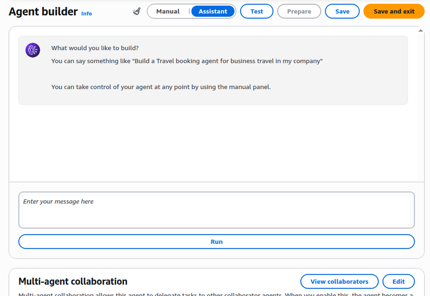 What’s interesting is that you can click the Assistant button and get help creating your agent. I’m going to use the Manual method for now.