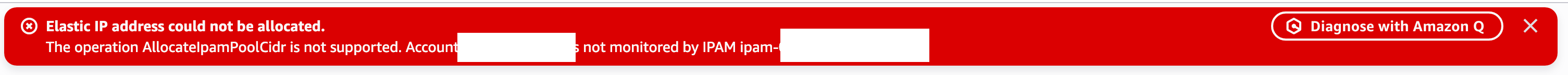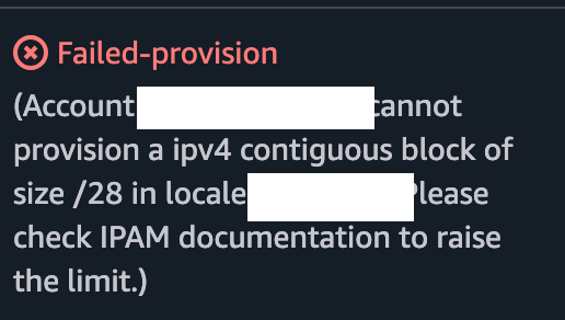Then I get this error - meaning I asked for more IPs than I’m allowed to request initially