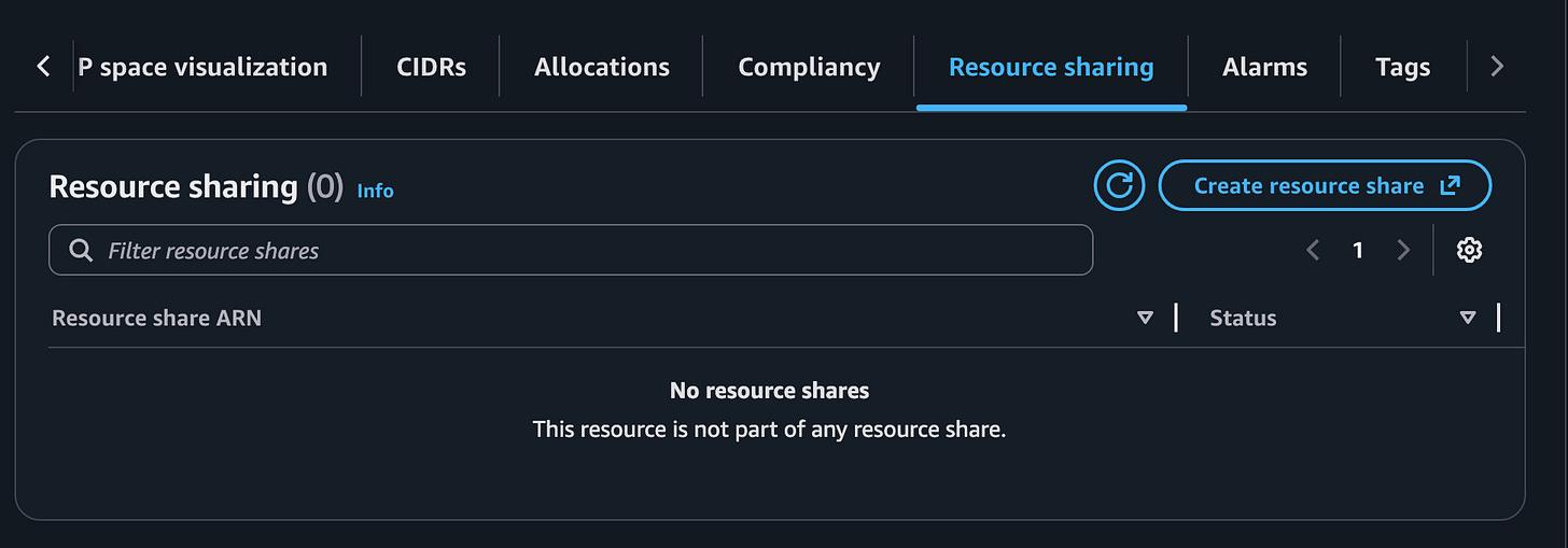 I’ve shared that resource group to a particular OU in my AWS Organization as explained in the other blog posts. Let’s see if I can go use those IPs now.