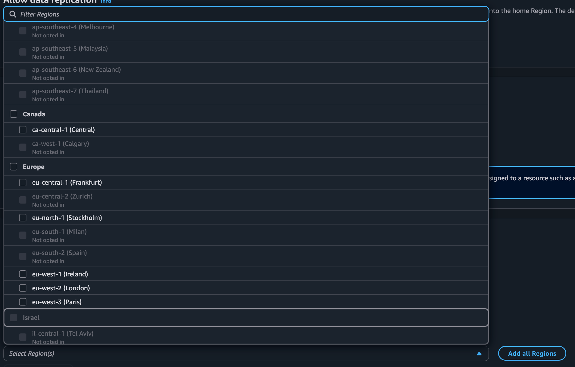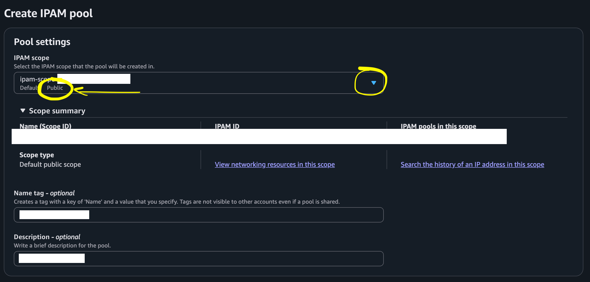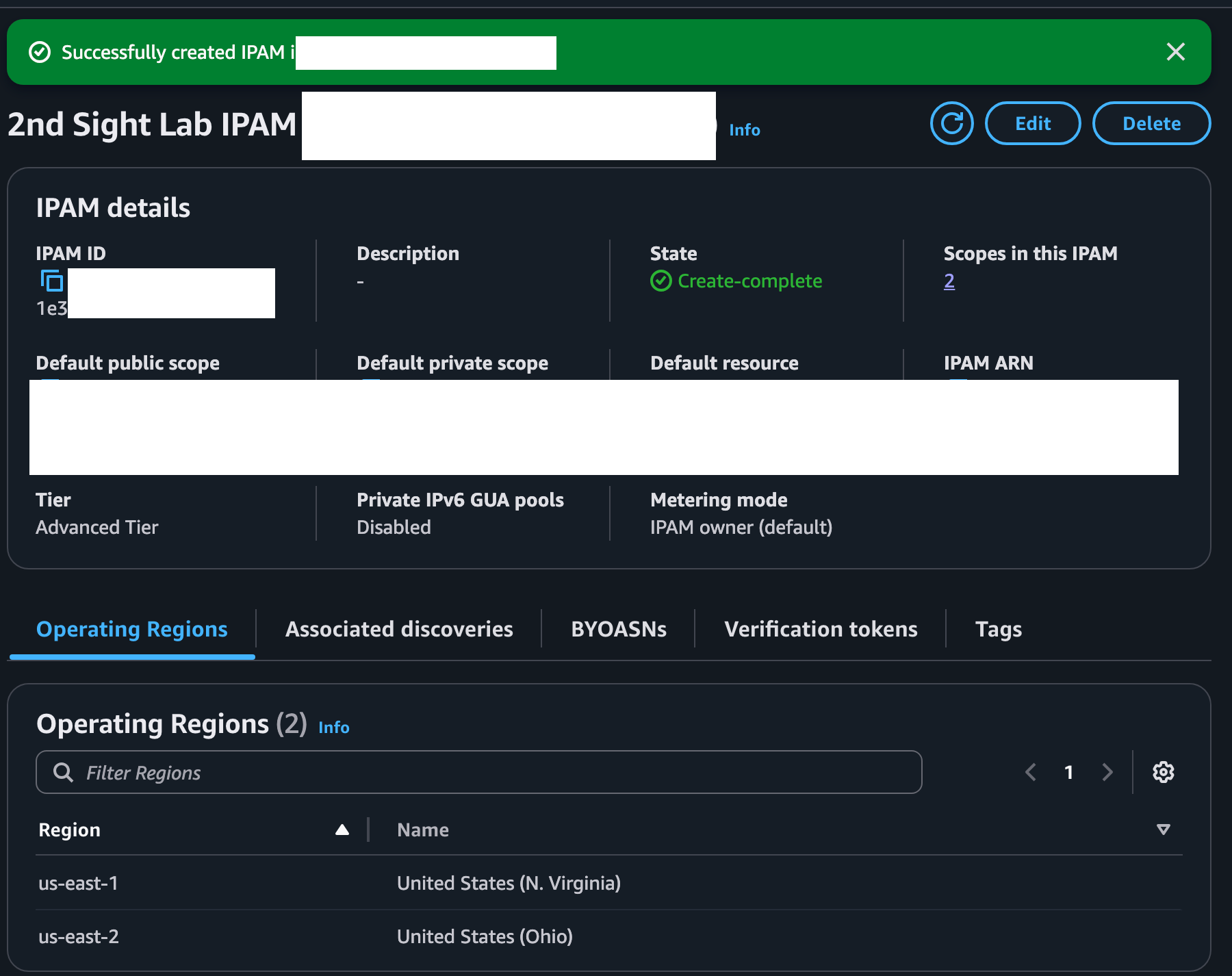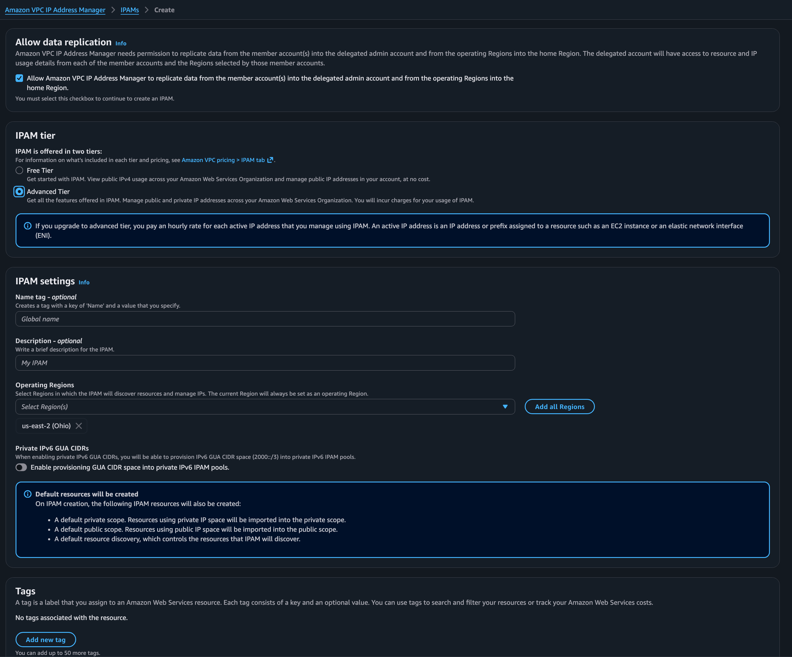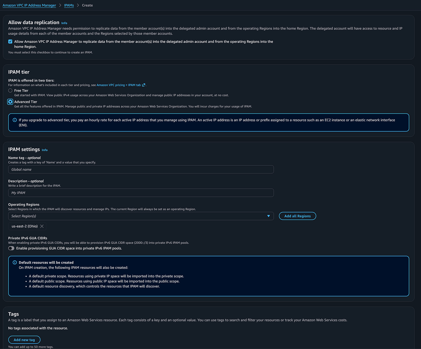 Select your regions. Create your IPAM.