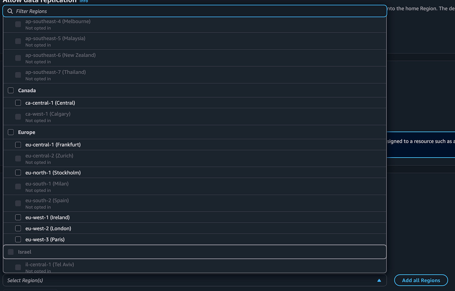 The next thing you will notice is that IPAM is only available in certain regions. What’s a bit confusing is that Amazon Q says the AWS documentation says this service is available in every region. Perhaps you have to manage it in a particular region and then can allocate IPs to other regions. I’ll let you test that out because the regions I need are available for me to select.