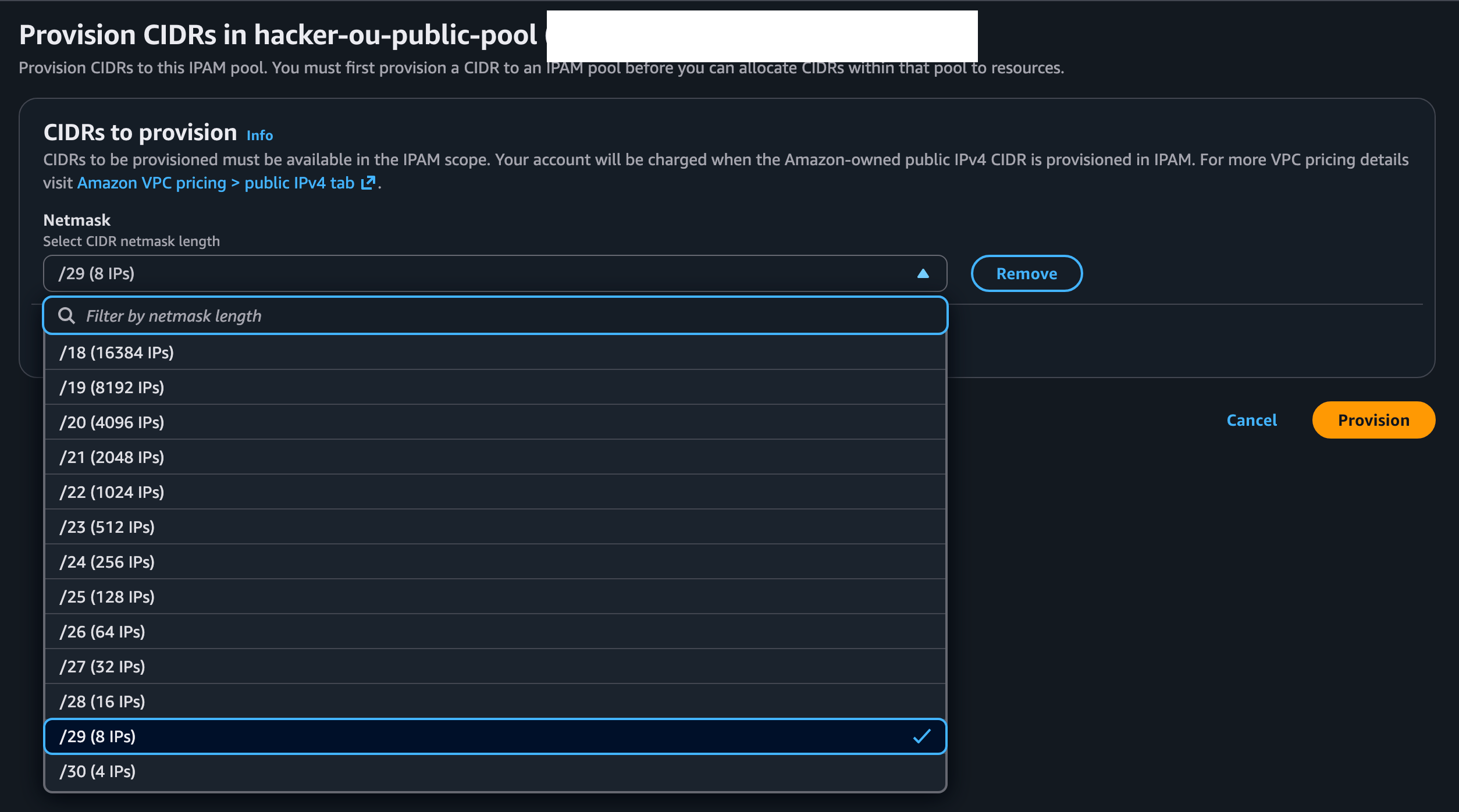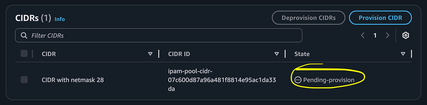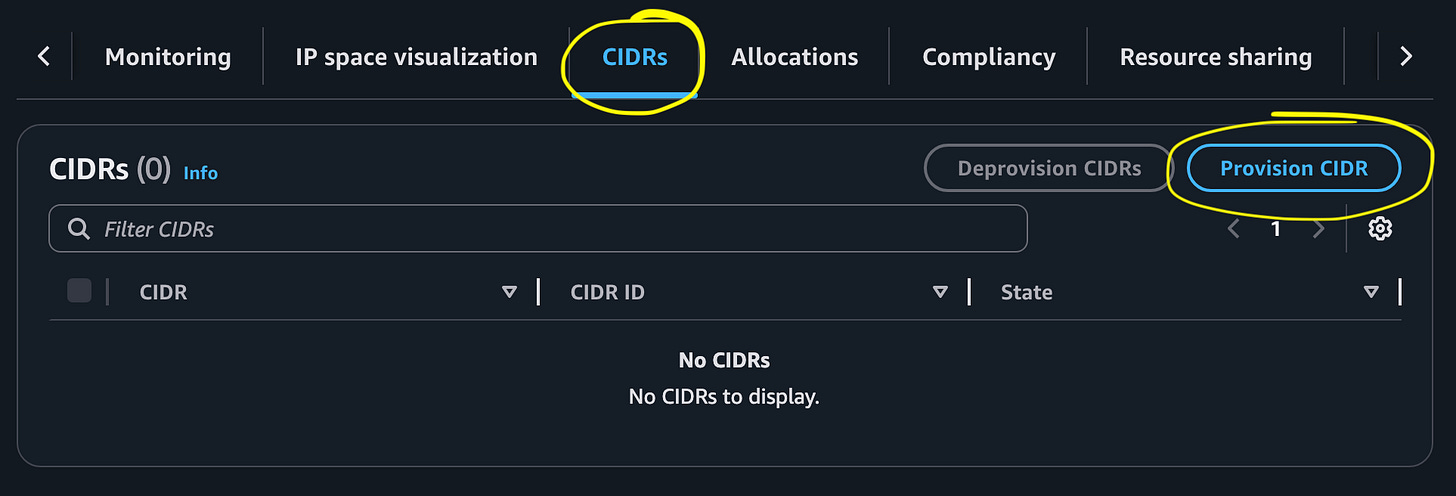 Provision a CIDR