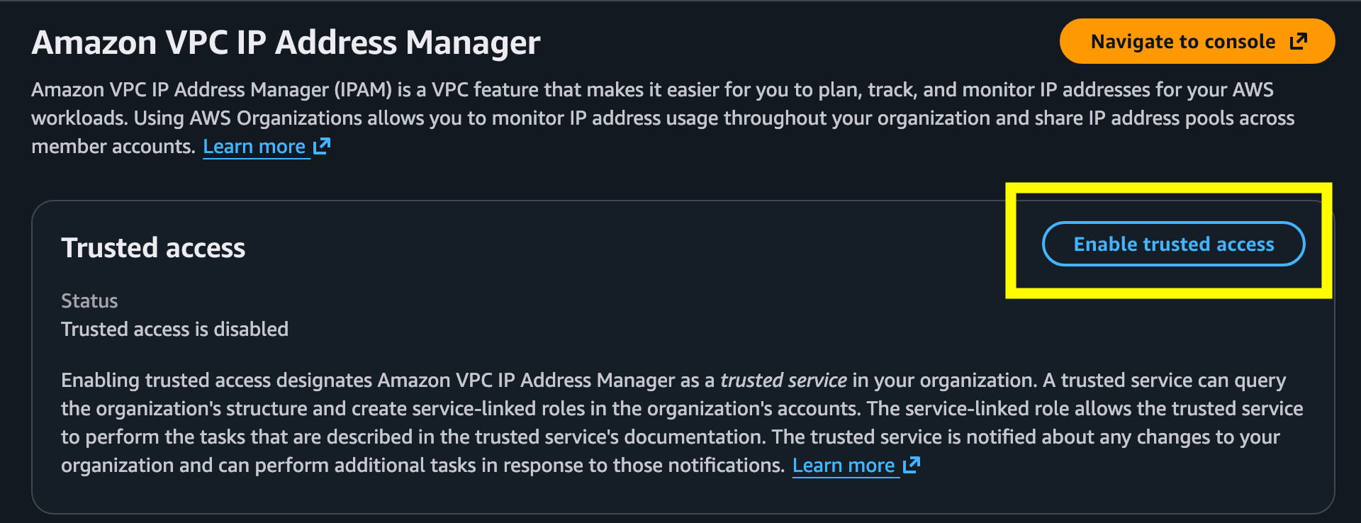 Enable trusted access: