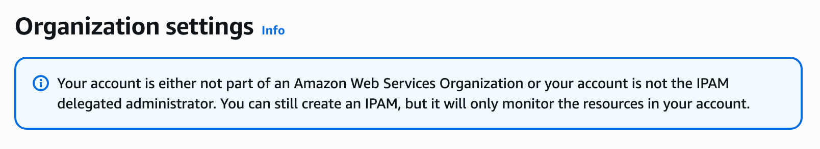 I check out the Organizations link in IPAM: